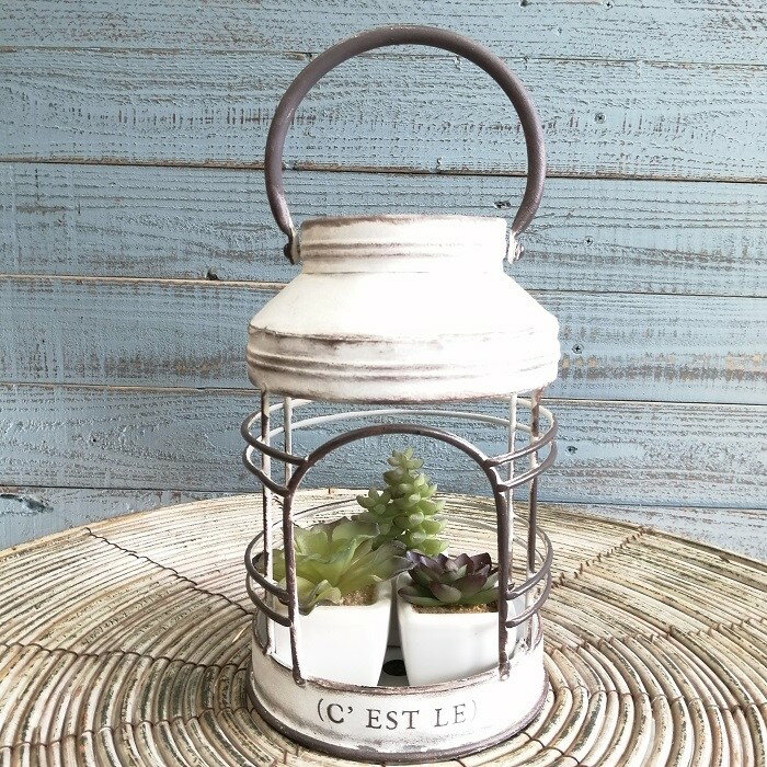 上部ハンドルを含まないサイズ 直径15×高さ22センチ 上部ハンドルを含む全高 33センチ 開口部分 幅8×高さ10センチ スチール製 底穴あり ランタンをモチーフにした プランツケージ 植物と組み合わせてナチュラルな ディスプレーにおすすめです。 【注意点】 必ず以下の内容をご確認・ご了承の上、 ご注文をお願い申し上げます。 お届け先やサイズ、決済方法によって 佐川急便かヤマト運輸で発送します。 運送会社のご指定は承れません。 特にご指定がない場合、在庫商品は 遅くても翌営業日までに発送致します。 再入荷待ちを含むご注文は 商品が揃い次第、発送致します。 火曜日は即日出荷は承れません。 商品本体以外のグリーンや小物は イメージ撮影に使用したもので 販売価格には含まれておりません。 商品画像の色合いは個体差があり モニターの環境に影響されますので 目安としてご参考ください。 表示サイズは若干の個体差があります。 当店の取り扱うガーデニング雑貨は 高い実用性やサイズ・色合い・形状等に 完璧な品質や美しさをお求めになる お客様には不向きな商品です。 アンティーク感やジャンクな風合いを 楽しむ商品特性をご理解・ご了承の上、 ご注文をお願い申し上げます。 検品の上、良品・不良品の判定後に 出荷しております。大きな傷や歪み、 潰れや破損等、ご使用上問題のある 不具合を除き不良品とはなりません。 ●以下の内容は不良品とはなりません。 キズや塗装のはがれがあり 状態は個々に異なります。 日光・多湿・水濡れ・経年劣化で 色あせや変色、塗装のはがれや 錆が発生します。 文字や絵柄がデザインされた商品の 濃淡や擦れ具合に個体差があります。 ナチュラルガーデンにマッチするよう アンティーク調に加工された商品で 予めダメージ加工が施されています。 【キーワード】 プランツケージ バードケージ 鳥かご 置物 飾り オブジェ オーナメント ガーデニング雑貨 ガーデン雑貨 ガーデニング用品 ガーデン用品 ガーデニング ガーデン 庭 ベランダ 玄関 園芸用品 店舗ディスプレー 店舗用品 店舗装飾 インテリア雑貨 インテリア 雑貨 アンティーク ナチュラル おしゃれ かわいい ポイント消化ガーデニング雑貨 ガーデニング 雑貨 ガーデン 園芸用品 店舗用品 店舗装飾 ショップディスプレー 店舗ディスプレー ナチュラル アンティーク かわいい おしゃれ ガーデンオーナメント ガーデンオブジェ 置物 飾り プランツケージ 鳥かご