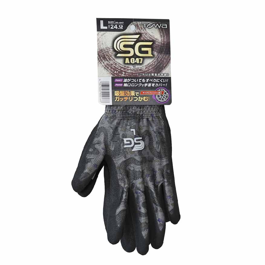 【こちらは10双販売となります】 他には無い龍のデザインの作業用手袋 手によくフィットし、細やかな作業に適しています。 ニトリルゴムをコーティングしているので引っ掻き、摩耗に強く、耐久性をアップしています。 特殊スベリ止め「マイクロフィニッシュ」加工を施しているため、油がついても高いグリップ性を発揮します。 背抜きコーティングのため通気性に優れ、ムレにくく、作業を快適にサポート。 袖口ロングタイプで手首をカバーしてくれます。 材質 表:ニトリルゴム 編手:ポリエステル 荷運び・引っ越し・運送倉庫業・農作業・ガーデニング・園芸・土木建築・建設機械操作など幅広いシーンでご使用できます。
