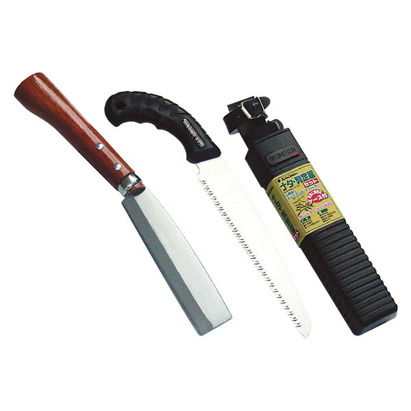 ●山菜採り・ガーデニング アウトドアに!●特長●丈夫な総焼入型●●セット内容● ・ナタ● ・剪定鋸● ・携帯に便利なケース●付属品:収納ケース●材質:ステンレス