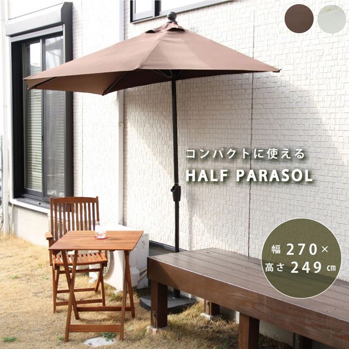 【超目玉クーポン配布中★20日20時〜】 パラソル 半円 壁 「 半円パラソル 」【FBC】 幅270×奥行135×高さ249cm アイボリー ブラウン グリーン 【メーカー直送】【返品/変更/キャンセル不可】 屋外 アウトドア ビーチパラソル 壁際