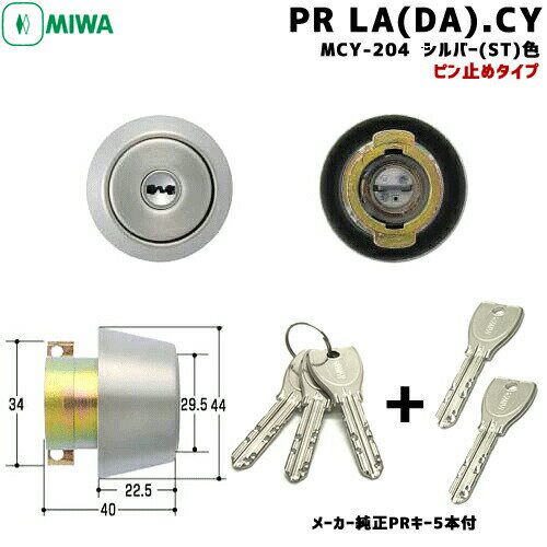 【ポイント5倍】ディンプルキー5本付 PR LA.CY ST色MIWA 鍵 シリンダー キー5本 交換用シリンダー MIWA-LA (DA)タイプ 交換シリンダー シリンダー錠 交換 取替え PRシリンダー キー5本付 シルバー色 対応扉厚33〜42mmLA MA DA 13LA