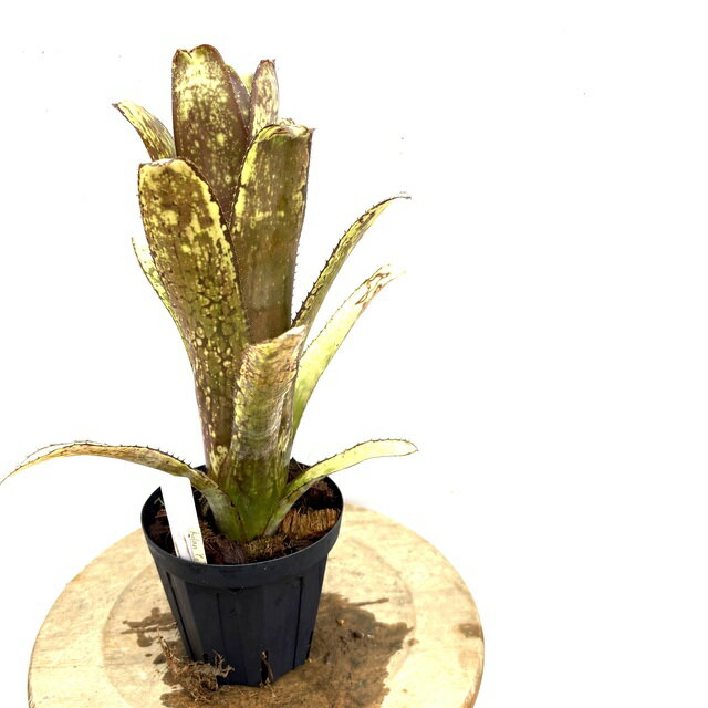 詳細情報 商品 (現品) ビルベルギア 'コーランイエロームーン' (No.62409) (観葉植物 おしゃれ 壁掛け インテリア ミニ 小型 大型 吊り下げ 室内 タンクブロメリア Billbergia Kolan Yellow Moon') 学名 Billbergia 'Kolan Yellow Moon' サイズ 4号ポット鉢直径 : およそ12cm鉢高さ : およそ10cm※写真と異なる鉢(サイズ、色など)でお届けする場合もございます。 株の状態 当店で養生した安心の株です。 科名 ブロメリア科 (Bromeliaceae) 属名 ビルベルギア属 (Billbergia) 日当たり 直射日光を避けて、よく日に当てると大きく成長します。葉焼けをしないなるべく強い日光を与えると綺麗に発色し、葉が引き締まります。日照が少ないと葉が退色しますが、また強い日に当てることで発色します。 水やり 湿度の高い環境を好むため葉水を与え、土が乾いたら水をたっぷりと与えます。成長点のタンク部の水を交換するように水を与えるとより良いです。タンク部に水を貯めて育てることでより元気に育てられますが、締めて育てたい場合にはタンクに水をあまり貯めず、水やりも少なめにします。水やりが多めの場合、葉が伸び気味になり大きく育ちます。締めて育てる場合、葉が引き締まり密度が高くなります。 増やし方 株分けが基本です。子株が親株の半分ほどのサイズになってから、取り分けて植えます。用土は水はけの良いものを使用します。(ミズゴケやヤシチップなど) 耐寒性 最低気温が10度程度になったら暖かい室内に入れます。気温が低い季節は水やりを控えめにし、タンクにもなるべく水は貯めません。 原産地 ブラジル 備考 写真が現物です。(2025/10/11に撮影)日々成長するため、古い葉が落ち、新しい葉が出ていることがございます。開花後、色が褪せた状態でのお届けとなる場合がございます。人気の高い魅力的なビルベルギア! 写真が現物です! (2025/10/11に撮影) 日々成長するため、古い葉が落ち、新しい葉が出ていることがございます。