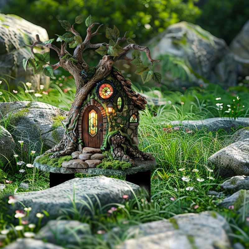 ガーデンオーナメント 古木 ツリーハウス おしゃれ かわいい アンティーク調 アメリカンカントリー 庭 玄関 芝生 鉢植え 植木鉢 景観装飾 地中差し込み式 アクリル製 軽量(x2)