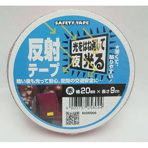 暗い夜も光って安心。 ●暗い夜も光って安心。 ●夜間の交通安全に。 ●サイズ:20mm×9M。 ●色:赤。