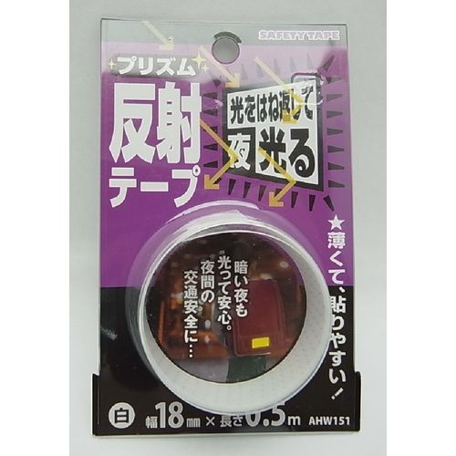 暗い夜も光って安心。 ●暗い夜も光って安心。 ●夜間の交通安全に。 ●サイズ:50mm×3M。 ●色:白。