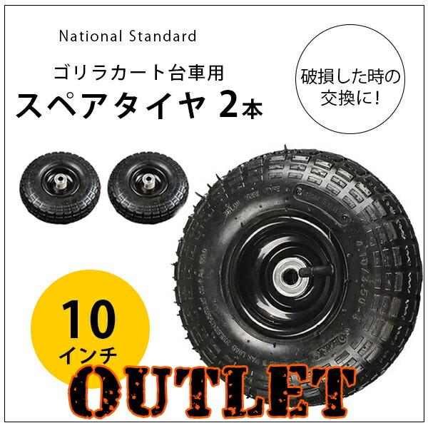 【在庫有り】【アウトレット】National Standard ゴリラカート 台車用 10インチ エアータイヤ 2本 社外品 交換用 ホイール付 タイヤ ホイール キャスター スペアタイヤ パーツ 部品 オプション アクセサリー 補修 修理 カート キャリー Gorilla Carts Tire 4.10/3.50-4”