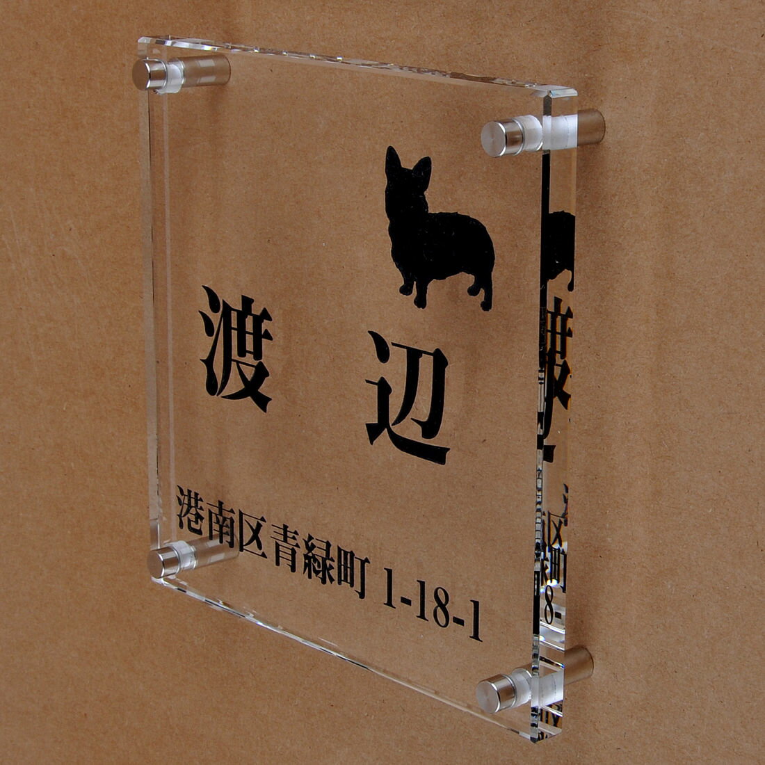 表札のアトリエ ガラス表札 透明 150x150mm わんこと一緒 住所付き 【HLS_DU】【RCP】【楽ギフ_包装】【楽ギフ_名入れ】 attr73attr ctgr1ctgr sml8sml+ctgr1ctgr DOG