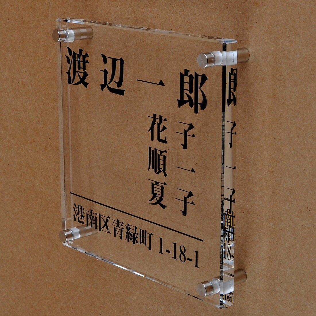 表札のアトリエ ガラス表札 透明 150x150mm シンプル 家族表札 住所付き2 【HLS_DU】【RCP】【楽ギフ_包装】【楽ギフ_名入れ】 attr73attr ctgr1ctgr sml8sml+ctgr1ctgr noanml