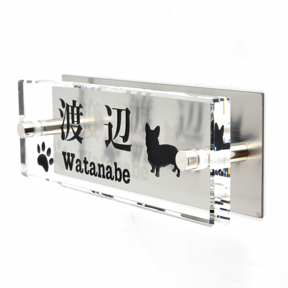 表札のアトリエ ガラス表札 ステンレス板付き 145x50mm わんこと一緒(選べる犬種) 肉球付き2 【HLS_DU】【RCP】【楽ギフ_包装】【楽ギフ_名入れ】 attr79attr ctgr1ctgr sml8sml+ctgr1ctgr DOG