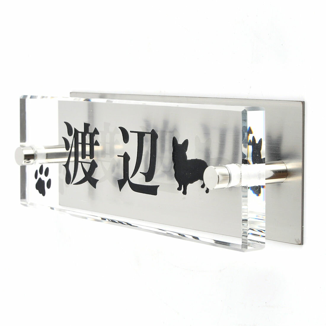 表札のアトリエ ガラス表札 ステンレス板付き 145x50mm わんこと一緒(選べる犬種) 肉球付き 【HLS_DU】【RCP】【楽ギフ_包装】【楽ギフ_名入れ】 attr79attr ctgr1ctgr sml8sml+ctgr1ctgr DOG