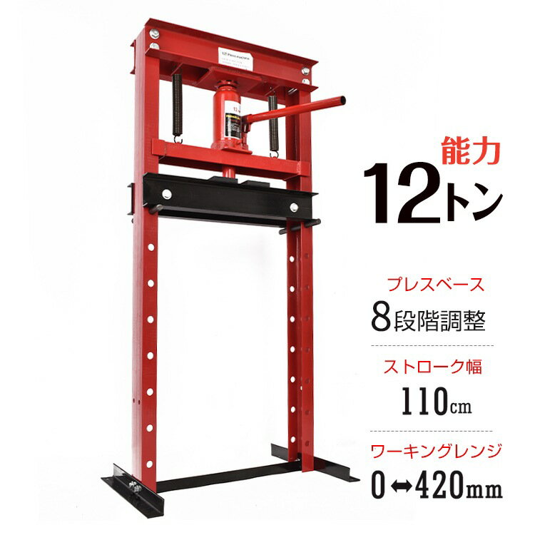 \期間限定P10倍UP/油圧プレス プレス機 手動 12t 12トン 8段階調節 門型 門型プレス機 ベアリング シャフト 圧入器 圧入 整備 脱着 自動車 バイク オートバイ 鉄板 メンテナンス 赤 ee334