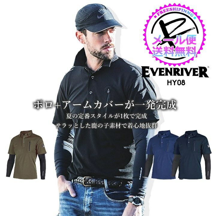 【即日発送】イーブンリバー ポロシャツ 半袖 フェイクレイヤード HY08 重ね着風 一体型 ドライ 鹿の子 アームカバー 春夏 作業服 作業着 スポーツ カジュアル EVENRIVER