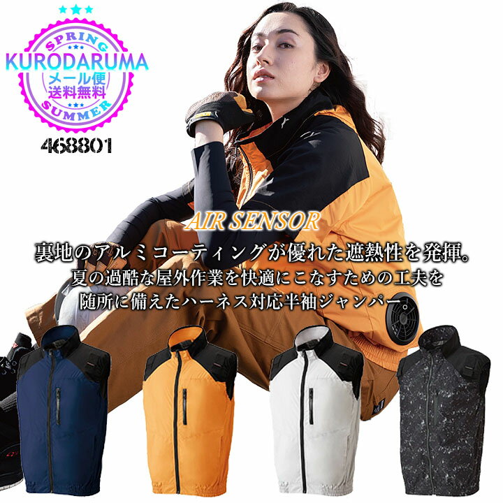 【即日発送】空調作業服 半袖 ジャンパー ハーネス対応 エアセンサー 268801【服のみ】クロダルマ 撥水 軽量 遮熱性 男女兼用 釣り アウトドア スポーツ 作業服 作業着 熱中症対策 電動ファン対応【送料無料】