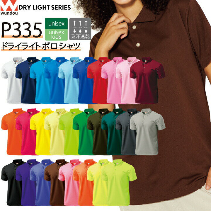 wundou ドライライトポロシャツ P335 P-335 半袖 ポロシャツ 吸汗 速乾 メンズ レディース キッズ 男女兼用 子供 ジュニア ユニフォーム 部活 夏 UVカット スポーツ スポーツウェア 運動 ウンドウ 大きいサイズ 小さいサイズ【メール便発送※代引不可】