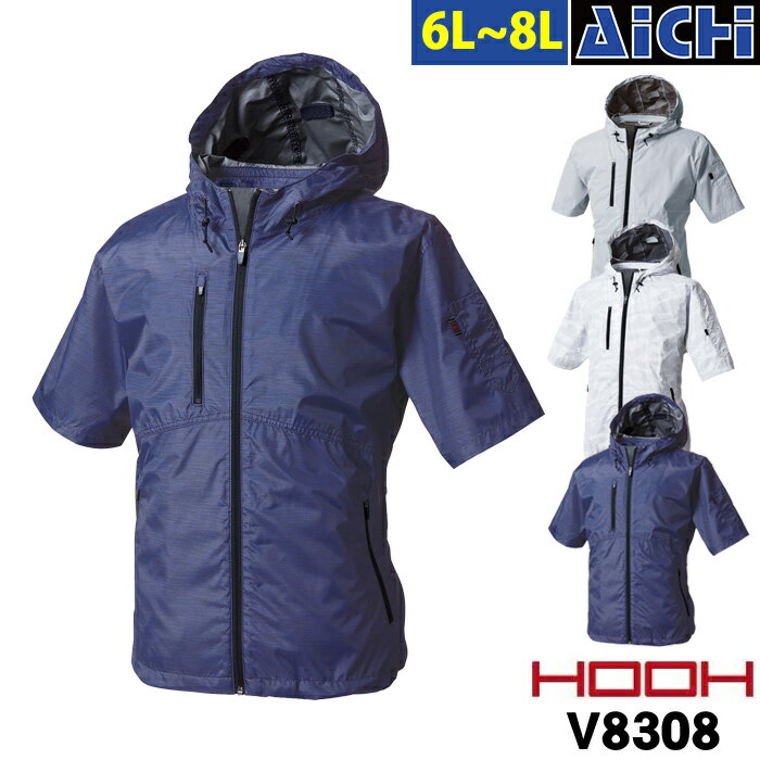 HOOH 鳳皇 村上被服 快適ウェア 空調ウェア V8308 裏チタン フード付き 半袖 ブルゾン [ 服のみ ] 6L 〜 8L | 熱中症対策 涼しい 屋外作業 炎天下 スポーツ アウトドア 大きいサイズ 父の日 母の日