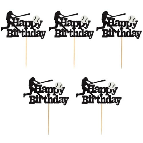 誕生日 ケーキトッパー スポーツテーマ(野球)ケーキ挿入カード ケーキデコレーション Happy Birthday 記念撮影用 誕生日パーティー装飾 お祝い用品 ケーキ飾り 5点セット 送料無料