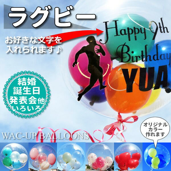 ラグビー 選手 ラグビー大好き少年 卒部祝い 小学生 中学 高校 大学 合格祝い 入学祝い 卒業祝い 全国大会 花園 お祝い 贈り物 誕生日 プレゼント【ラグビー】透明スポーツ名入れ付きバルーン電報セット