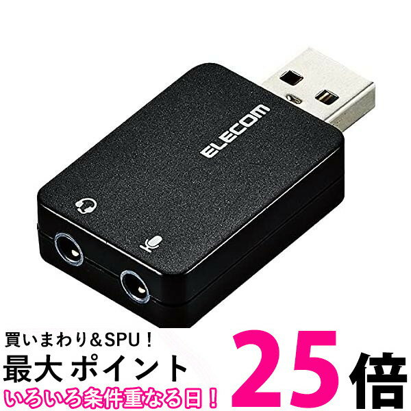 エレコム USBオーディオ変換アダプタ φ3.5mm USB to ステレオミニジャック 3極 4極 対応 ノイズ解消 直挿しタイプ ブラック 送料無料 【SG67974】