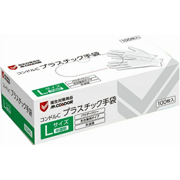山崎産業|THE YAMAZAKI CORPORATION コンドルC プラスチック手袋 パウダーフリー 100枚入り L 半透明 19801
