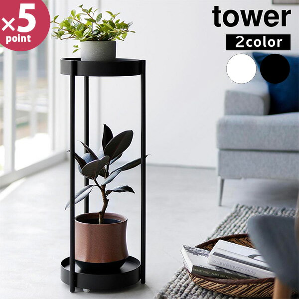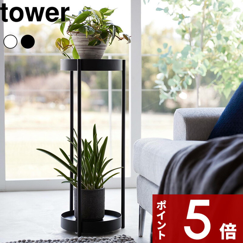 \最大1000円クーポン!/ 【ポイント5倍】キャスター付きプランタースタンド タワー 2段 山崎実業 tower ホワイト ブラック 4366 4367 フラワースタンド プランター台 サイドテーブル 白 黒 タワーシリーズ yamazaki