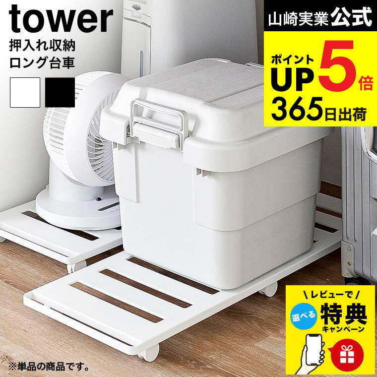 【レビュー特典】 [ 押入れ収納ロング台車 タワー ] タワー山崎実業 公式 tower 1417 1418 ホワイト ブラック / 耐荷重30kg キャスター付き ワゴン すのこ 押し入れ クローゼット ベッド下収納 ハンドル付き ストッパー付き JGS 送料無料
