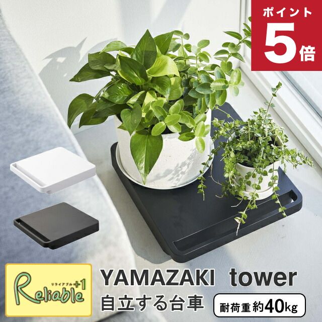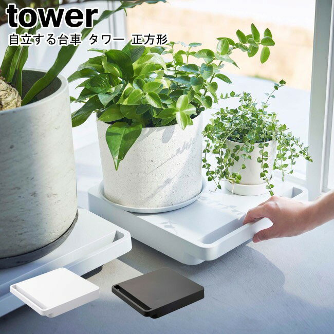 【レビュー特典】 tower 『 山崎実業 自立する台車 タワー 正方形 』 台車 平台車 軽量 コンパクト キャスター付き 荷台 ドーリー ホームキャリー キャリーカート 観葉植物 台 小型 家庭用 押入れ収納 耐荷重 40kg おしゃれ 公式 ホワイト ブラック 5455 5456 YAMAZAKI