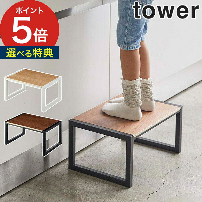 【特典付き&365日出荷】 [ 踏み台 タワー ] tower ホワイト 5158 ブラック 5159 山崎実業 子供用 ステップ台 ワイド 天然木 スチール スツール ベンチ サイドテーブル 棚 スタンド 椅子 机 玄関 収納 シンプル おしゃれ Yamazaki 【ポイント5倍】