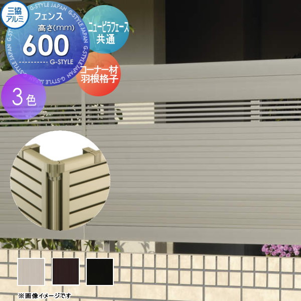 【部品】 フェンス 三協アルミ 三協立山 ニュービラフェース用 コーナー材(羽根格子) H600 NLT-01-06 境界 屋外 アルミ 形材フェンスガーデン DIY 塀 壁 囲い