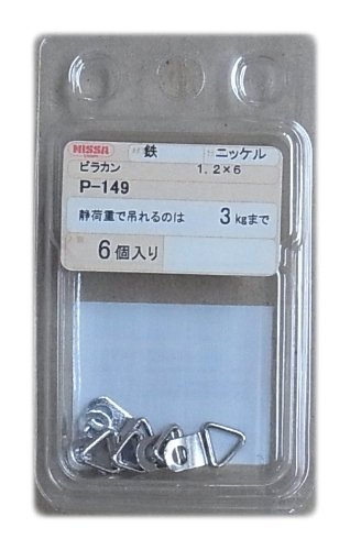 ●線径…1.2mm●プレートサイズ…8.0×6.0mm●使用荷重…3.0kg●材質…鉄●仕上…ニッケルメッキ●穴径…3.2mm●入数…10個●破断荷重…27.8kg●取付ねじ無し●パネルなどに木ネジで直接取付けます。●上部のリングに洋灯吊にかけて使用します。建築金物及び家具金物(スチール、木材)/ワイヤーロープ&金具・チェーン