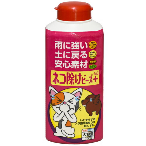 ●木酢液+わさびエキスでネコ&イヌを寄せつけません! ●そのまま撒くだけの簡単タイプ!大容量750g ●芳香効果は約1ヶ月持続!ビーズ状なので雨にも強い! ●天然素材使用で使用後は自然に土に還ります! ●散布後は安全な土壌改良素材になります。 ●犬猫の糞尿の害から砂場、芝生、菜園、花壇を守ります。