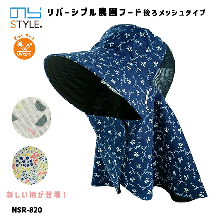 農作業 帽子 レデイーズ のらスタイル リバーシブル農園フード 後ろメッシュ NSR-820 フローラルアソート ガーデニングフード 農園帽 日よけ