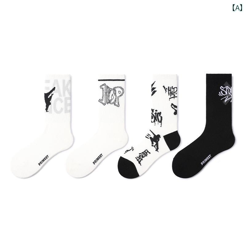 ソックス 男女兼用 秋冬 ミドル丈 シンプル アルファベット ロゴ スポーツ カジュアル 普段使い 部屋着 黒 白 グレー 綿 ポリエステル ポリウレタン 伸縮性