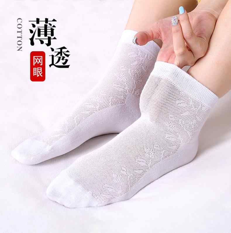 ソックス レディース クルー丈 ミドル丈 綿 コットン 薄手 シアー メッシュ 防臭 吸湿速乾 ムレにくい 春夏 ホワイト デイリー 普段使い