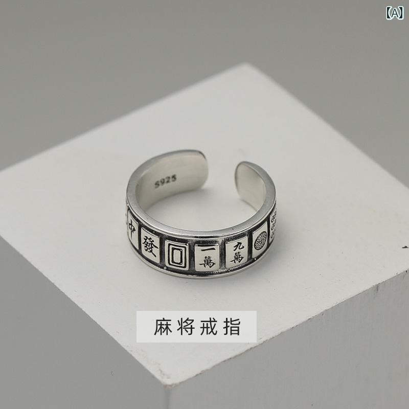 指輪 男女兼用 S925 銀 レトロ 麻雀モチーフ アンティーク加工 開口タイプ 調節 リング アクセサリー 幸運 ラッキーアイテム お守り 普段使い カジュアル ユニーク
