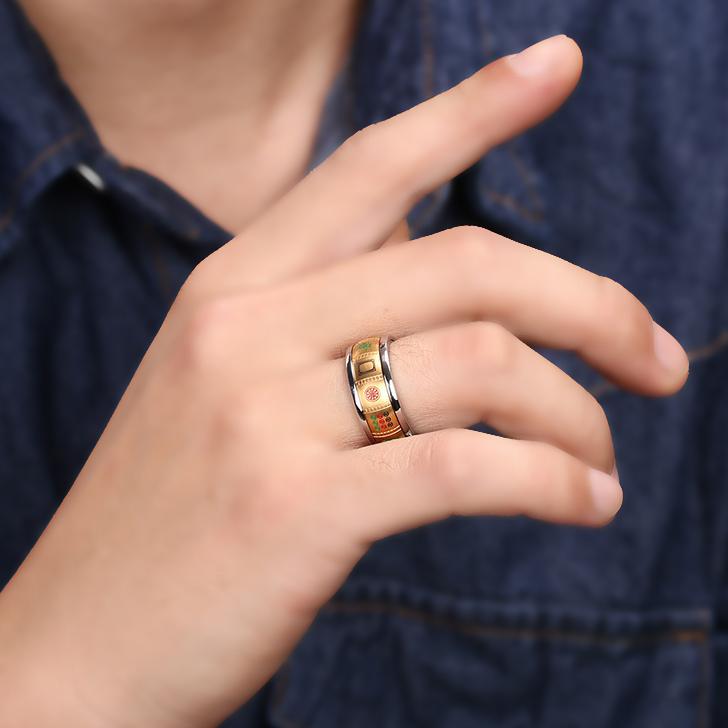 指輪 メンズ レディース 男女兼用 麻雀 十三么牌 回転式 チタン鋼 ゴールド シルバー ユニーク リング 人差し指 小指 アクセサリー ストリート カジュアル 普段使い 耐久性