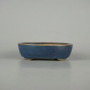 【中古】盆栽鉢 一蒼作 小型 長辺 約 14cm 楕円鉢 釉薬 現品 中古鉢 送料無料