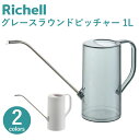 リッチェル グレースラウンドピッチャー 1L ホワイト ブルー 水さし 便利 園芸 農業 園芸資材 1L インテリアプランツ ラウンド型 目盛り付 ステンレスノズル 水差し 青 白