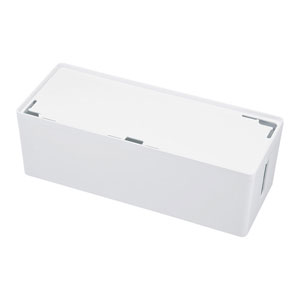 【商品解説】●デスクの上のケーブルや端末をスッキリ整理できる、コンパクトで場所を取らないケーブルボックスです。4〜6個口の電源タップを収納可能です。※形状によっては収納できない場合もあります。タブレット・スマホを立てられるスタンド機能を備えています。天面のフタ蓋には、充電端子を通せるコードホールが6箇所設けられています。ボックスの左右どちらからでもコード類を出せるよう、両側面にスリットを施しています。収納したタップのスイッチ操作やケーブルの出し入れが可能な、内部アクセススリットを備えています。ボックス底面には、内部の温度上昇を緩和するスリットを施しています。ボックス底面には、設置時の横滑りや接地面への傷を緩和するシリコンクッションを備えています。電源タップをボックスに収納することでホコリの蓄積を防ぎ、トラッキング現象による火災の防止に役立ちます。ボックス本体の素材には、UL94規格において垂直燃焼性V-0、水平燃焼性HBグレードの難燃性プラスチックを使用しています。【スペック】●型式:EKC-BOX003WH(EKCBOX003WH)●JANコード:4549550233637仕様1:[サイズ] 外形寸法:約幅310×奥行140×高さ110mm※蓋を嵌めた状態 収納内寸:約幅280mm×奥行110mm×高さ95mm※蓋を嵌めた状態[重量]約390g[材質]ABS樹脂[その他]・天面コードホール×6・側面スリット×3・スタンド機能使用時の推奨端末厚み:10mm以下この商品は宅配便でお届けする商品です出荷可能日から最短日時でお届けします。※出荷完了次第メールをお送りします。配送サービス提供エリアを調べることができます「エリア検索」をクリックして、表示された画面にお届け先の郵便番号7桁を入力してください。ご購入可能エリア検索お買い上げ合計3,980円以上で送料無料となります。※3,980円未満の場合は、一律550円(税込)となります。●出荷可能日から最短日時でお届けします。(日時指定は出来ません。) ※お届け時に不在だった場合は、「ご不在連絡票」が投函されます。 「ご不在連絡票」に記載された宅配業者の連絡先へ、再配達のご依頼をお願いいたします。●お届けは玄関先までとなります。●宅配便でお届けする商品をご購入の場合、不用品リサイクル回収はお受けしておりません。●全て揃い次第の出荷となりますので、2種類以上、または2個以上でのご注文の場合、出荷が遅れる場合があります。詳細はこちら■商品のお届けについて商品の到着日については、出荷完了メール内のリンク(宅配業者お荷物お問い合わせサービス)にてご確認ください。詳しいお届け目安を確認する1度の注文で複数の配送先にお届けすることは出来ません。※注文時に「複数の送付先に送る」で2箇所以上への配送先を設定した場合、すべてキャンセルとさせていただきます。
