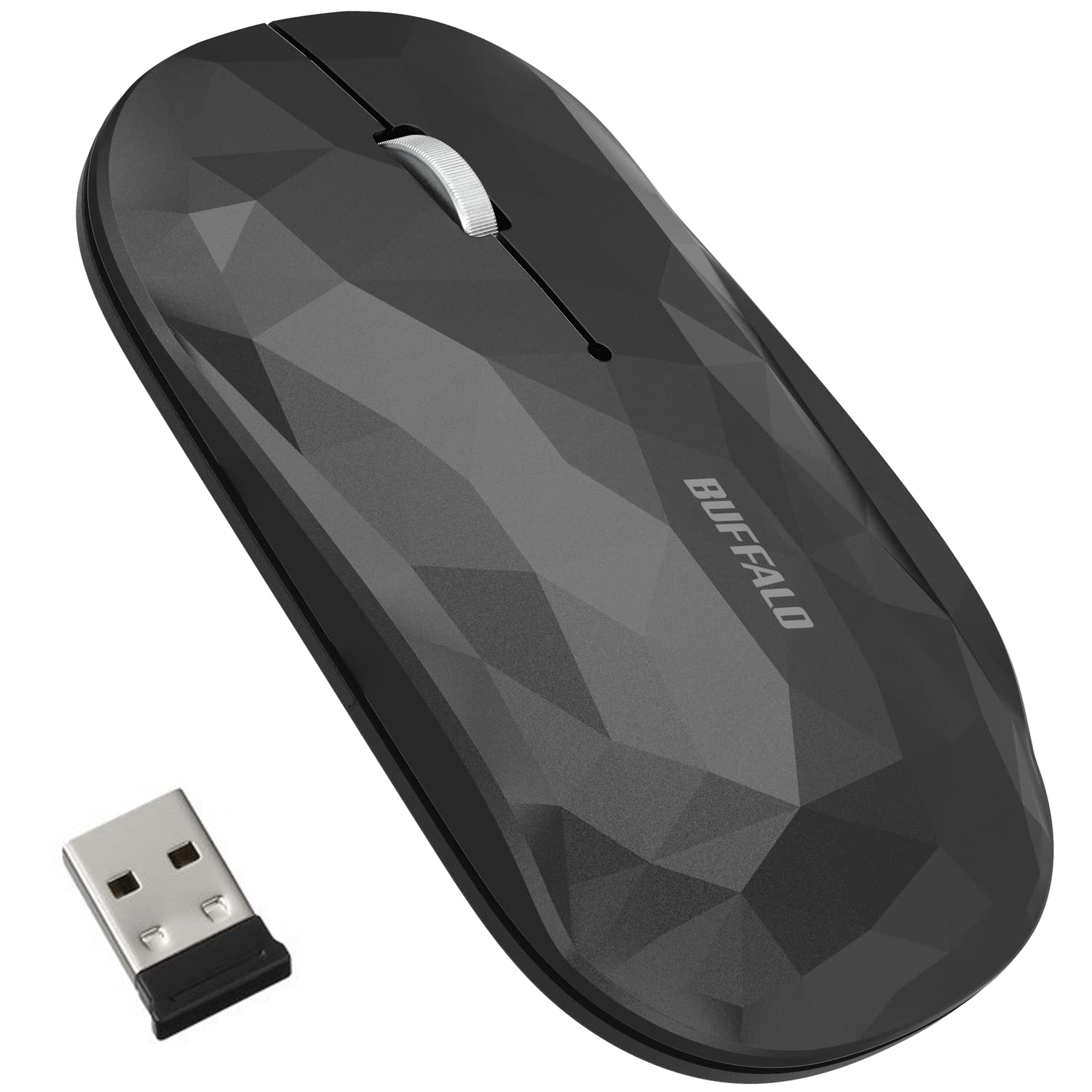 バッファロー ワイヤレス モバイルマウス 2.4GHz レシーバー付属 FLEXUS 薄型軽量 3ボタン 無線 静音 BlueLED MIL規格準拠 dpi切替(600/1200) プレゼンテーションモード搭載 節電モデル 最大582日使用可能 Windows/Mac/Chrome対応 ジオメトリデザイン ブラックBSMBW335GBK