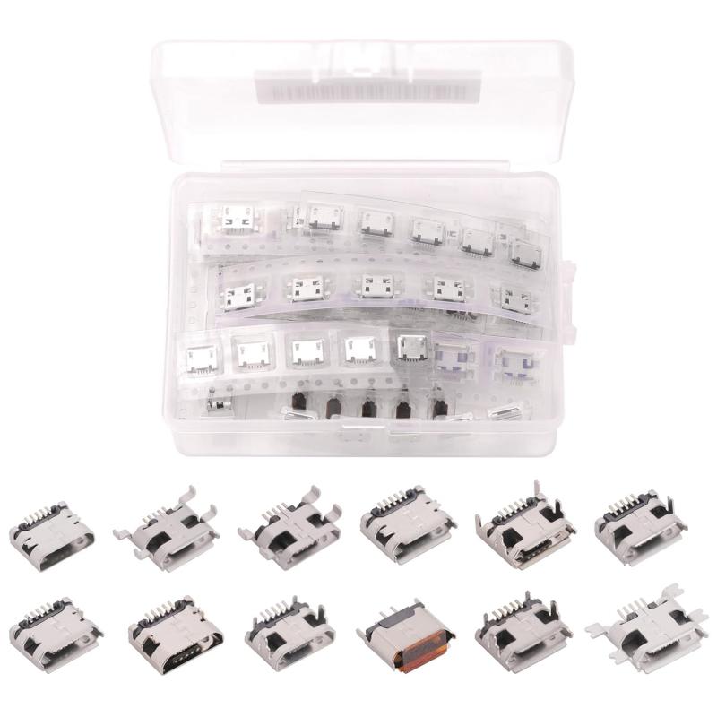 PENGLIN 60個 12種類 マイクロUSBメスコネクタ、Micro USB 5ピン ミニソケットコネクターセット、電話、おもちゃ、回路基板はんだディップSMD SMT、はんだ付け修理USB交換アダプタあらゆるニーズに応える豊富なセット:12種類、合計60個のコネクタが含まれています。多様なスタイルと十分な数量で、古いデバイスの修理から新製品の開発まで、さまざまなニーズに完全に対応します。コンパクトな設計、高効率:標準のUSBおよびMini-USBコネクタよりも小型で、貴重なスペースを節約します。OTG機能と複数の高速データ転送モードをサポートし、複雑なシナリオにも簡単に対応します。信頼性の高い品質、長寿命:ステンレススチール製のシェルと耐高温素材で構築されています。優れた電気性能を維持しながら、10,000回以上の挿抜サイクルに耐え、長期的な信頼性をします。 幅広い互換性、多様な用途:携帯電話、カメラ、コンピューター周辺機器、充電器、ゲーム機など、幅広いデバイスと完全に互換性があり、さまざまな分野に適しています。丁寧な梱包、明確な識別:新品の品質をするためにテープで梱包されています。 USB-C (Type-C) ソケットが含まれていないことが明記されているため、購入時に混乱することはありません。