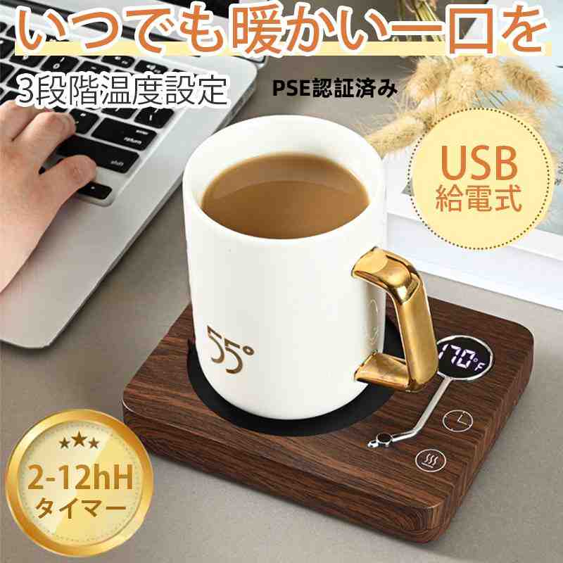 カップウォーマー コーヒーウォーマー 保温コースター PSE認証済み コップ保温器 清酒/お茶/コーヒー/牛乳など飲み物 3段階温度調整 12hタイマー デスク/オフィス/家庭用