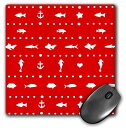 【中古】【未使用・未開封品】3drose LLC 8?x 8?x 0.25インチマウスパッド、明るい赤とホワイト現代魚ヒトデタツノオトシゴとアンカーNautical Sea Oceanパターン( MP _ 766
