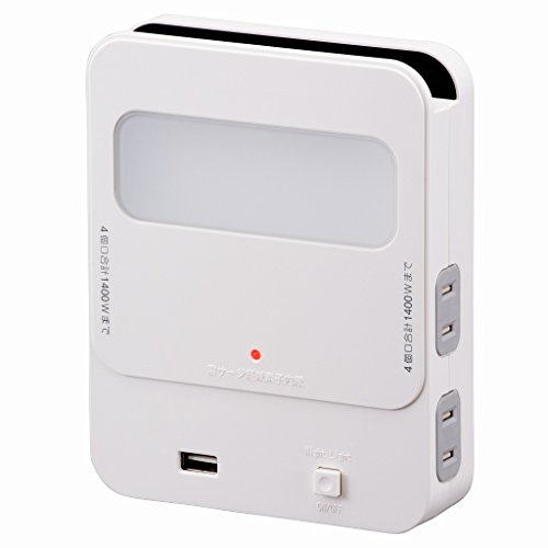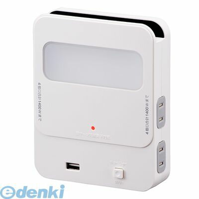 【お取り寄せ商品】 ・メーカー在庫確認後、納期のご連絡をいたします。 ・在庫切れ、廃盤、生産終了などでお手配できない場合、ご注文をキャンセルさせていただく場合がございます。 ■壁面とフィットするデザインでインテリアに調和する新型拡張コンセント。 ■USB充電ポート付きでスマホやタブレットの充電もできます。 ■スマートフォンスタンド付きで充電中のスマホを置くことができます。 ■ナイトライト付きで寝室にぴったり。 ■絶縁カバー付きプラグでトラッキング火災を防止。 ■過電流防止ブレーカー、ホコリ防止安全シャッター付き。 ■雷サージ軽減素子内蔵。 ■コンセント周り難燃性樹脂採用。 ■本体カラー:白 ■コンセント:4個口 ■15A 125V 1500W以下 ■USB:1個口(電流容量2400mA) ■本体材質:難燃性ABS ■外形寸法(約):幅120×高さ155×奥行34mm(プラグ含まず) ■質量(約):250g ・ご使用前に、必ず接続する機器内のデータのバックアップをお取りください。 ・通信機能付きのUSBケーブルではご使用いただけない場合があります。 ・接続使用される機器の最大消費電力の合計は1400ワット以下にしてください。 ・接続使用される機器によってはタップの使用を禁止している場合があります。使用する機器の取扱説明書に従ってご使用ください。