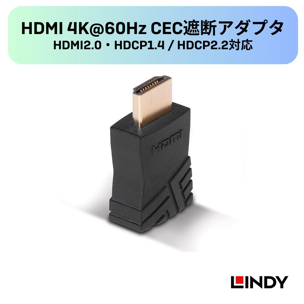 LINDY HDMI 4K@60Hz CEC遮断アダプタ HDMI2.0対応 HDCP1.4 HDCP2.2対応 HDMI信号安定化 CEC信号ブロック テレビ接続サウンドバー対応 HDMI延長ケーブル用 HDMI13ピン遮断 高解像度対応 4K60Hz HDR対応 映像機器 トラブル解消 小型 軽量 ブラック ノイズ干渉防止 Type-A