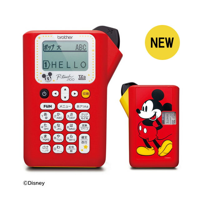 Brother PT-J100MCR ピータッチ ミッキーレッド 発売日:2020年2月12日●みんな大好き!元気なミッキーでラベル作りがさらに楽しく