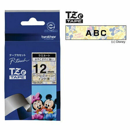 ブラザー TZeテープ ディズニーテープ ベビーミッキーイエロー 黒字 12mm TZe-DL31 送料無料 【SG95598】