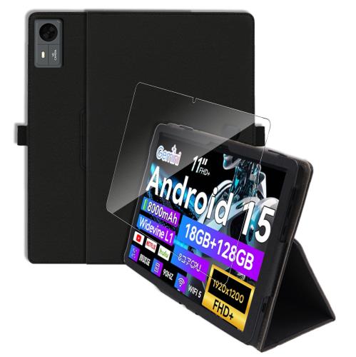For FPD 11インチ タブレット ケース フィルム セット スタンド 全面保護 角度調整 キズ防止 軽量 上質PUレザー タブレット用アクセサリー Sediven FPD CP11-J1 保護ケース ガラスフィルム (ブラック)