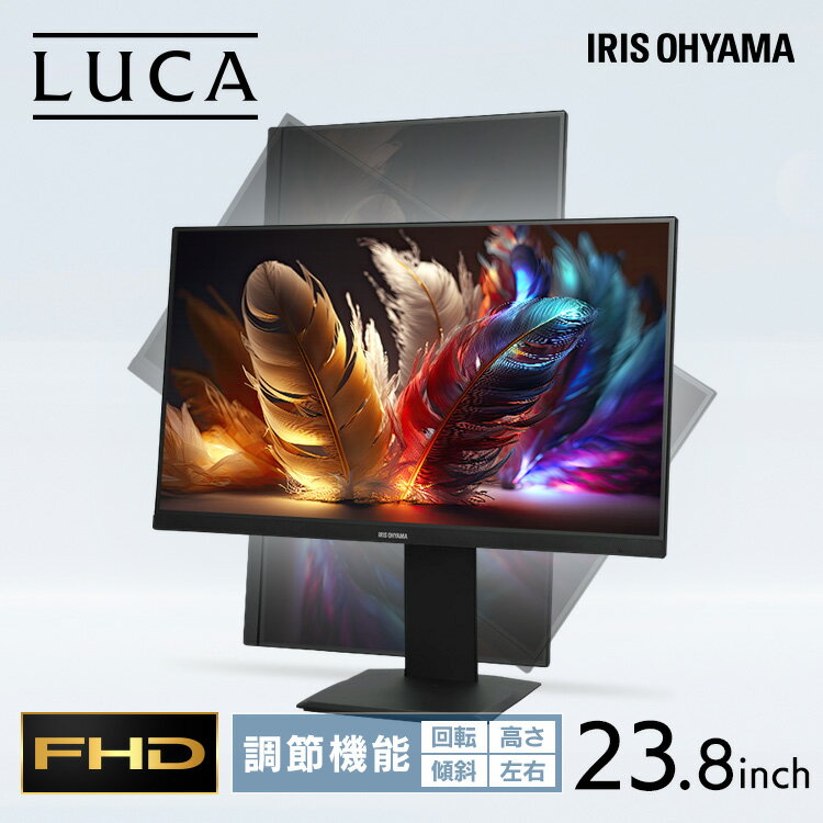 画面回転でタスクを快適に。ディスプレイを90°回転させることができるピボット機能。縦方向の情報を一目でより多く確認できるため、作業が捗ります。◆見やすい角度・高さに調節可能好みの角度・高さに調整可能なので、作業しやすい環境に。回転(ピボット)・高さ・傾斜(チルト)・左右(スイベル)◆キレイで深みのある映像を楽しめるFull HD 対応。1920×1080の高解像度で、細部までキレイに映し出します。高視野角パネル搭載。角度を変えてもほとんど変わらない色再現。繊細な色彩が臨場感を与えます。スピーカー内蔵なので、外付けスピーカー無しで音楽や映像を楽しめます。◆3辺スリムベゼルデザインベゼル(=フレーム)を薄くしました。縁が気になりにくいので、デュアルディスプレイにもおすすめ。◆目にやさしい設計ギラつきを抑えた非光沢タイプ。◆VESAマウント対応壁掛けやアームの取り付けも可能です。●インチ23.8●パネル方式HIS(IPS相当)●アスペクト比16:9●入出力端子AUDUO IN×1、VGA×1、HDMI×1●スピーカー出力2W+2W●チルト角−3°〜22°±2°●VESAマウント100mm×100mm●定格電圧/最大電流DC12V、2.5A●スタンバイ消費電力<0.5W●最大消費電力27W●商品サイズ(cm)幅約54×奥行約20.5×高さ約36●本体質量約2.6kg(スタンド含)●表示色1677万色(8bit)●解像度1920×1080●最大輝度250(cd/m2)●最大リフレッシュレート60Hz●色域/NTSC比72%●視野角(H/V)(CR 10:1)178°/178°●付属品取扱説明書、スタンド(支柱、台座)、HDMIケーブル、VGケーブル、電源コード(検索用:液晶 ディスプレイ 画面回転 ピボット Full HD 高解像度 スピーカー内蔵 モニター ディスプレー PCモニター 液晶モニター 4967576673648) 最強翌日配送対象商品に関するご案内 最強翌日配送対象商品・対象地域に該当する場合は最強翌日配送マークがご注文カゴ近くに表示されます。 最強翌日配送可能なお支払方法は【クレジットカード、代金引換、全額ポイント支払い】のみとなります。 下記の場合は最強翌日配送対象外となります。 ・15点以上ご購入いただいた場合 ・時間指定がある場合 ・ご注文時備考欄にご記入がある場合 ・決済処理にお時間を頂戴する場合 ・郵便番号や住所に誤りがある場合 ・最強翌日配送対象外の商品とご一緒にご注文いただいた場合 ・お届け先住所文字数が40文字以上の場合お届け先が沖縄・離島の場合、お届け日時のご希望に沿えない場合がございます。予めご了承ください。 ★ご注文前のよくある質問についてご確認下さい★