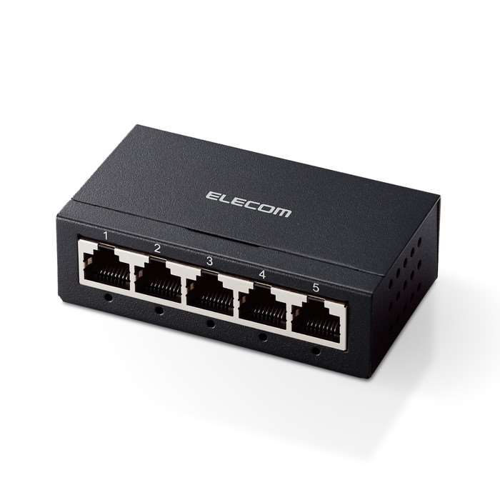 SEARCH WORD:hub スイッチングhub lanハブ 分配器 有線lan lanケーブル 有線lanアダプター ギガビット商品概要:■1000BASE-T対応のACアダプター電源のメタル筐体5ポートスイッチングハブです。 ■従来機種(※)より容積比で約60%サイズダウン。コンパクトで場所を取らない設計です。 ※従来機種:EHC-G05PA-B ■ストレート/クロスケーブルを自動判別する「Auto MDI/MDI-X」機能を全てのポートに搭載。接続ミスを防ぎます。 ■作動音が気にならない静音ファンレス設計で、静かな部屋での使用でも気になりません。 ■らくらく節電機能により接続していないポート、リンクしていないポートを自動的に判別し、電力供給を抑えます。パソコンがシャットダウンしている環境では、大幅な電力の節約を実現することができる、省エネ法に準拠したスイッチングハブです。 ■小型デザインで設置場所を選びません。本体背面に壁掛け設置用の穴があり、壁掛けすることも可能です。 ■ジャンボフレームに対応し、ジャンボフレーム対応機器との間でより高速なデータ転送が可能です。 ■環境にやさしいEU RoHS指令準拠。EU RoHS指令とは電気・電子機器に関する特定有害物質の使用制限についてEU(欧州連合)が決めた指令です。 ■自社環境認定基準を1つ以上満たし、『THINK ECOLOGY』マークを表示した製品です。 ■廃棄物削減に取り組み、製品に同梱する取扱説明書等をペーパーレス化した製品です。 ■環境保全に取り組み、製品の包装容器が紙・ダンボール・ポリ袋のみで構成されている製品です。商品仕様:■メーカー:エレコム■JANコード:4549550254298■商品名:スイッチングハブ LAN ハブ 5ポート Giga対応 1000/100/10Mbps 金属筐体 AC電源 ファンレス 静音 省エネ機能 壁掛け設置対応 ブラック■型番:EHC-G05MA-B■電源仕様:専用ACアダプター ■入力電圧:AC100~240V±10% 50/60Hz ■消費電力:2.8W(最大) ■発熱量:約10.1kJ/h(最大) ■省電力機能:らくらく節電E対応(IEEE 802.3az) ■エネルギー消費効率:0.6W/Gbps ■最大実効伝送速度:5.0Gbps ■測定時のポート速度とポート数:1Gbps:5ポート ■外形寸法(幅×奥行×高さ):約84.0×約47.8×約25.6mm(本体のみ) ■質量:約115g(本体のみ) ■筐体材質(カラー):メタル(ブラック) ■冷却ファン:なし ■盗難防止:セキュリティスロットなし ■動作時環境条件:温度:0℃~40℃、湿度:10%~90%(ただし結露なきこと) ■保管時環境条件:温度:-20℃~70℃、湿度:5%~90%(ただし結露なきこと) ■MTBF:309,000時間@25℃、250,000時間@40℃ ■法令対応:EU RoHS準拠(10物質) ■適合規格:VCCI ClassB ■付属品:専用ACアダプター(約1.2m) 1個、安全にお使いいただくために 1枚 ■ご注意事項:※ 掲載写真は表記サイズと異なる場合がございます。※ 画面上のカラーはご使用ブラウザやモニターの設定により、実物とは若干異なる場合がございます。あらかじめご了承の上、ご注文をお願いいたします。※予告なくデザイン、仕様、パッケージデザインなど異なる場合がございます。※商品概要、仕様、サービス内容及び企業情報などは商品発表時点のものです。※最新の情報に関しましては、メーカーサイトをご覧ください。※発売前予約商品についてはメーカーの商品製造数により納期が遅れる場合やご注文キャンセルをお願いする場合がございます。