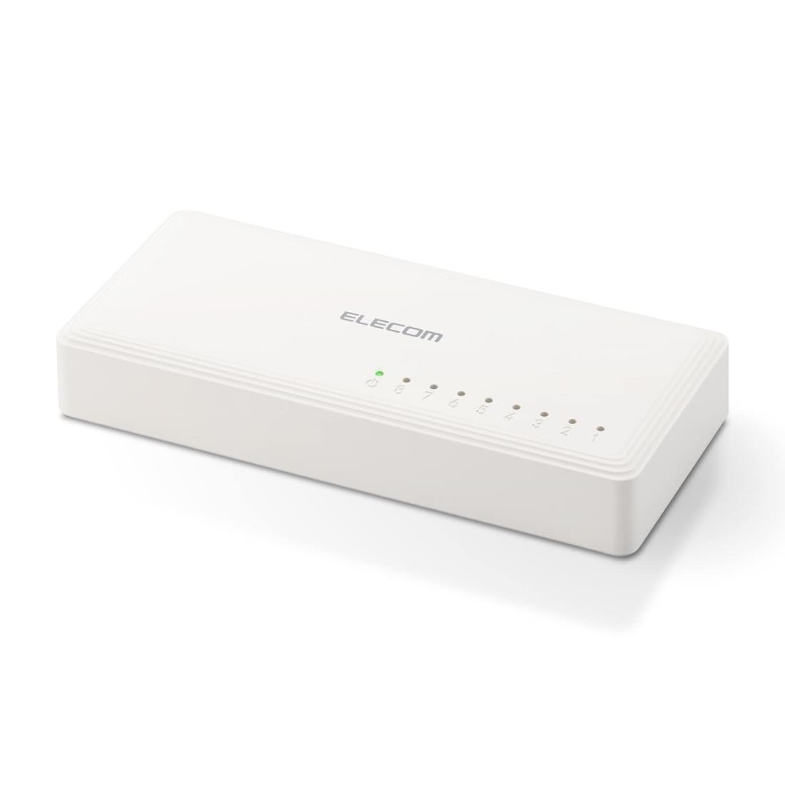エレコム スイッチングハブ 8ポート ギガビット プラスチック筐体 コンパクト 軽量 ACアダプター付属/壁掛け設置対応/静音ファンレス/省電力/EU RoHS指令準拠 ホワイト EHC-G08PA3-W